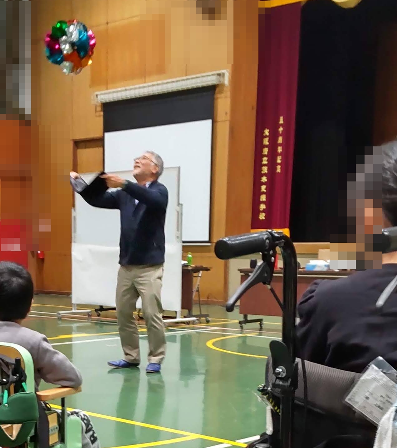 おかげさまで、なつかしい支援学校で、かわいいお子さん達の前で、マジックショーをさせていただくことができました。