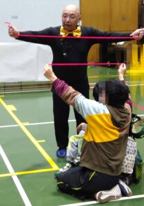 茨木支援学校でマジックショーをさせていただくことになり、主催者の先生から、できるだけお子さん達が参加できるマジックをお願いしますとのリクエストをいただいておりました。それで、わかりにくいかもわかりませんが、スリーロープルーティーンをさせていただくことにしました。