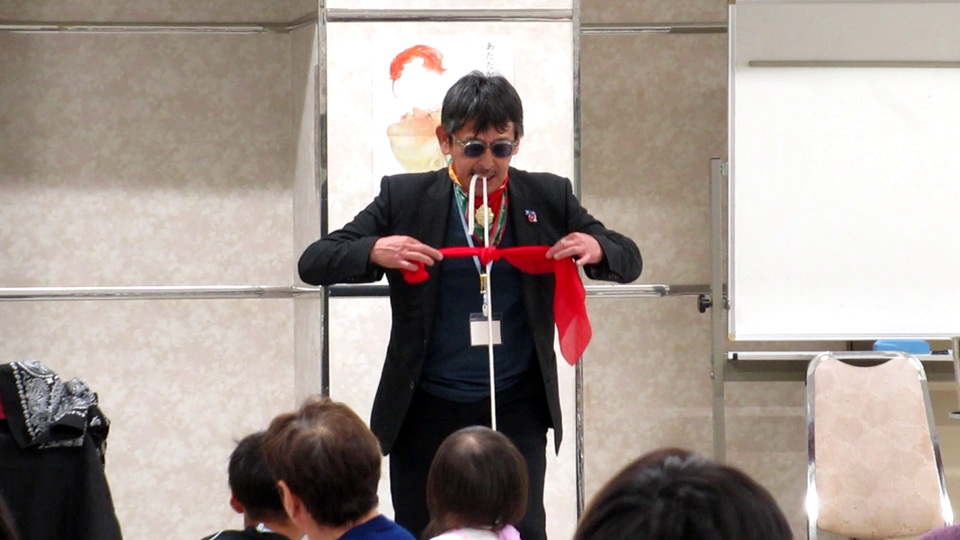 yamaさんがステッキのマジックから20世紀シルクのオープニングマジックを行います。
