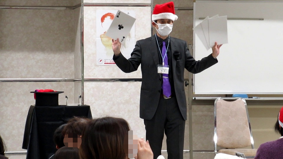 2025年12月7日(日)大阪府大阪市谷町7丁目にある大阪府社会福祉会館5F大ホールにて、公益財団法人 大阪交通災害遺族会第51回クリスマスの集いに、yama、池嵜、morimotoの3名でステージマジック、テーブルマジックを行いました。
