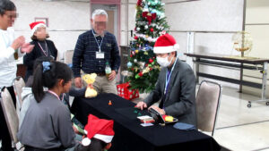 かなりテーブルマジックとかも熱心に見ていただく方もおり、演者側も皆様と一緒にクリスマス会楽しませていただきました。