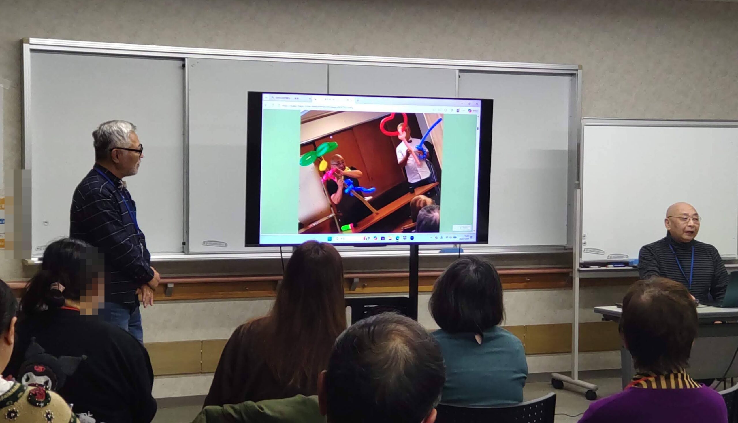 講師の先生のお話の後、私たちのボランティア活動の概要説明やウクレレとマジックの実演をさせていただきました。