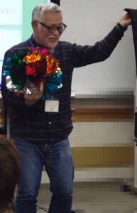 最後は他のボランティア団体様との交流会でした。私のいたグループは、けっこうマジックに関心のある方が多く、たくさん質問をいただきました。
