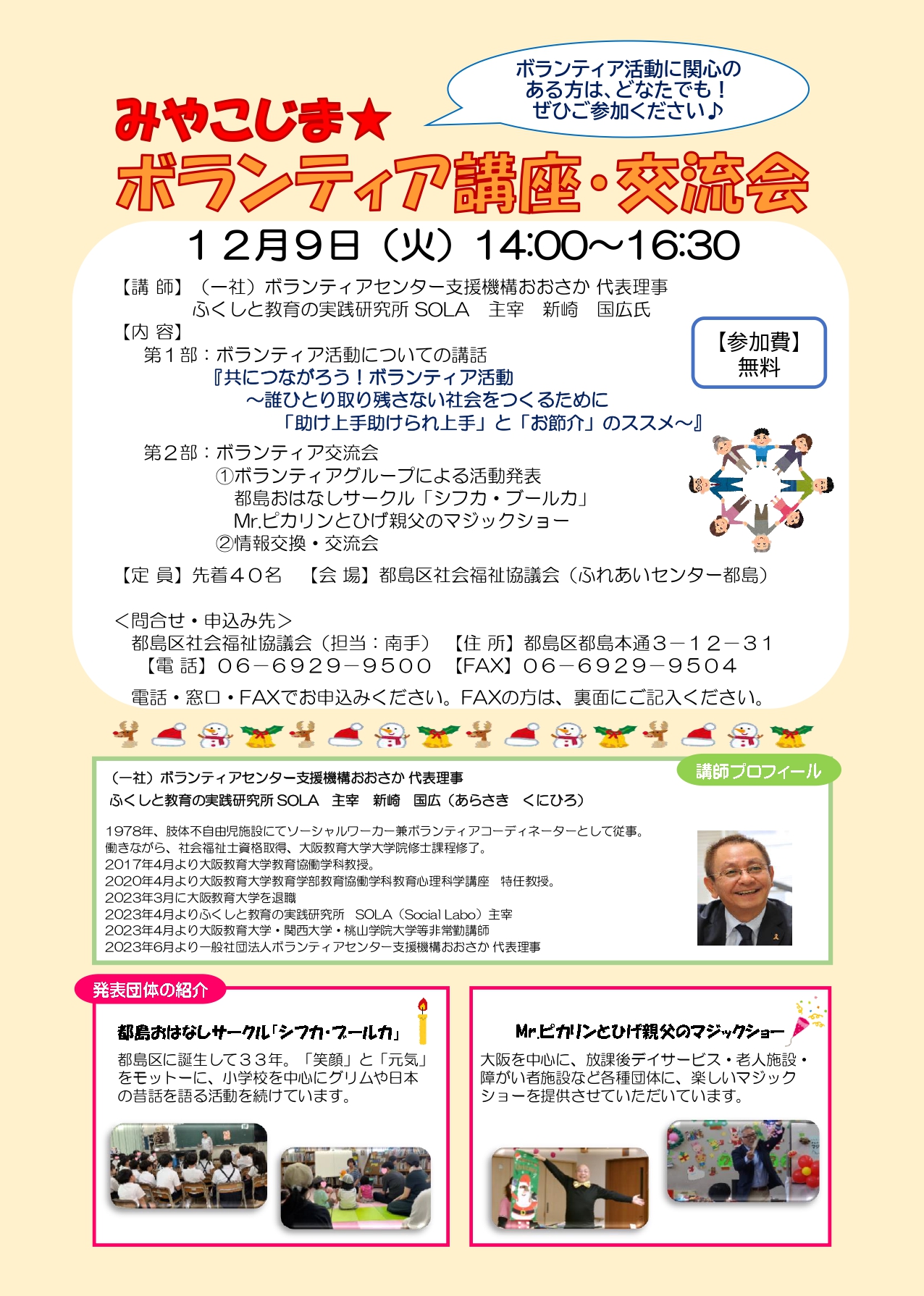 2025年12月9日 都島区社会福祉協議会様の『みやこじまボランティア講座・交流会』で、約10分のミニ・ウクレレ&マジックショーをさせていただきました。