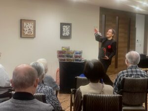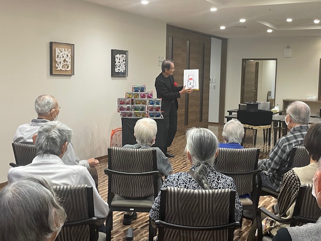 今日は、新大阪にある高齢者施設「グランドマスト新大阪」でマジックショーを開催しました。施設は新大阪駅近くにあり便利な場所にあります。演技場所は、施設の食堂でスペースも広くやりやすかったです。観客は、スタッフの方含め20数人、元気なお年寄りばかりで、反応も良く皆さんにしっかり楽しんで戴けたと思います。演目は、ステージマジックとサロンマジックは、いつもの出し物に3つ追加しトータルで約40分間のマジックショーでしたが、思ったより短く感じました。