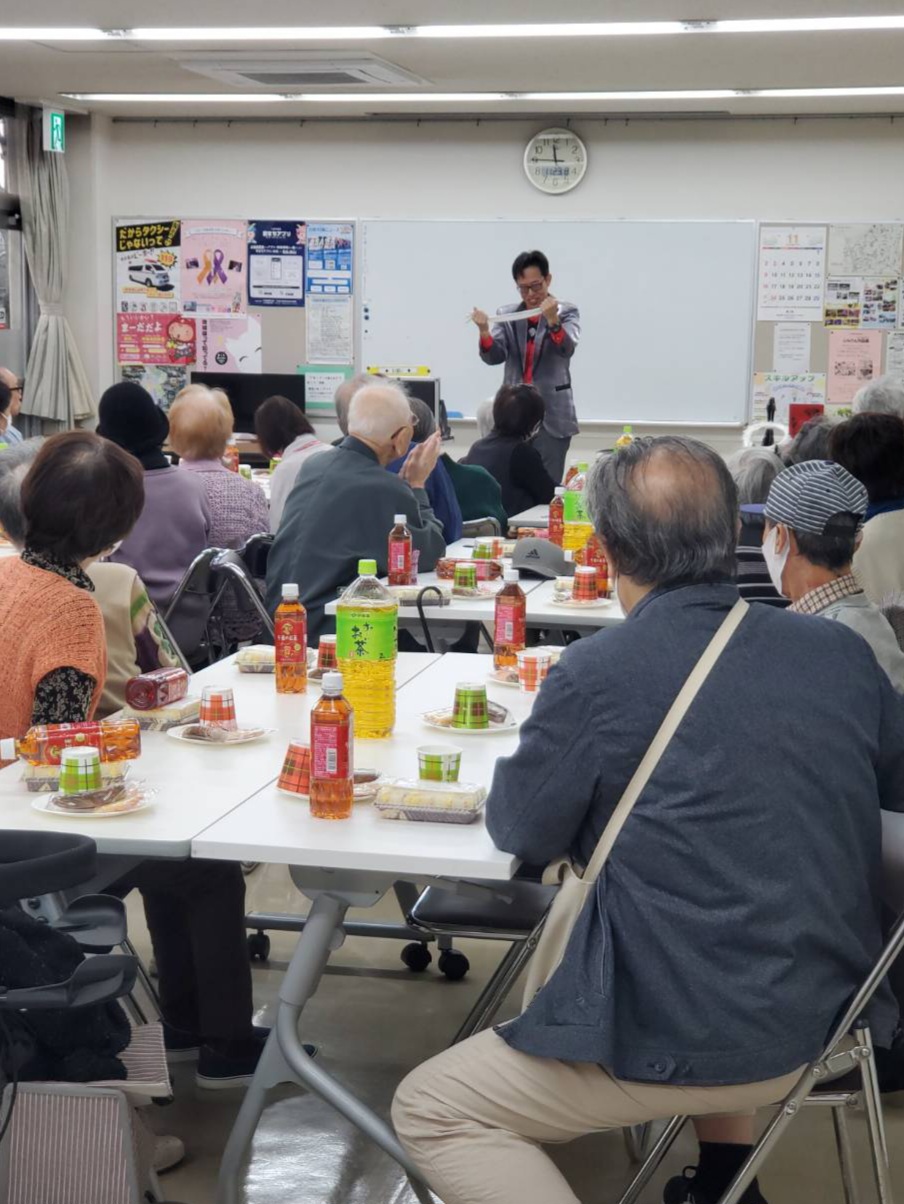 高齢者を中心に約50名程の参加者がおられ、私の前は落語研究会OBの方が30分程落語をお噺しされておられたので、既に会場は温まっており、私が何を話しても爆笑状態でした。