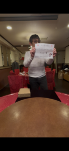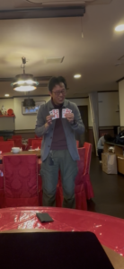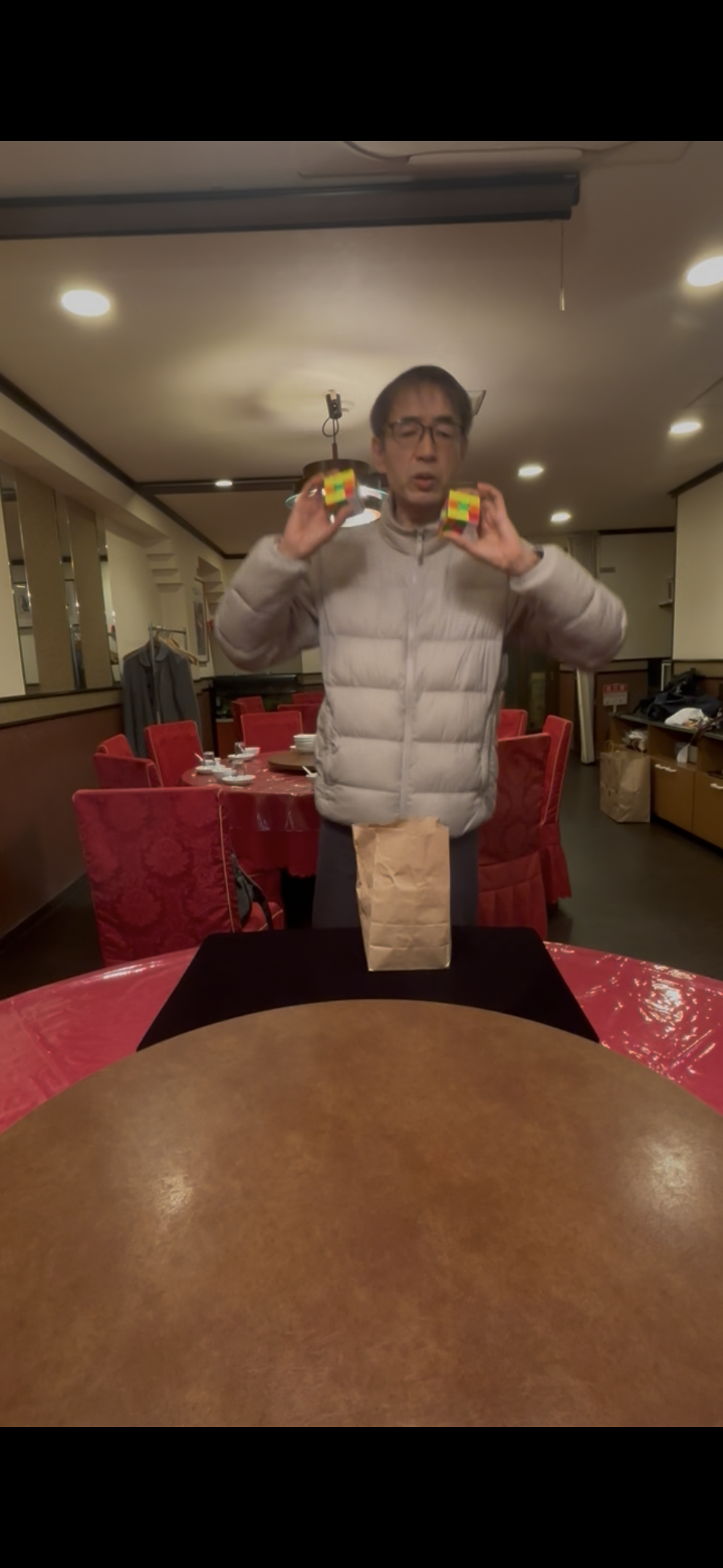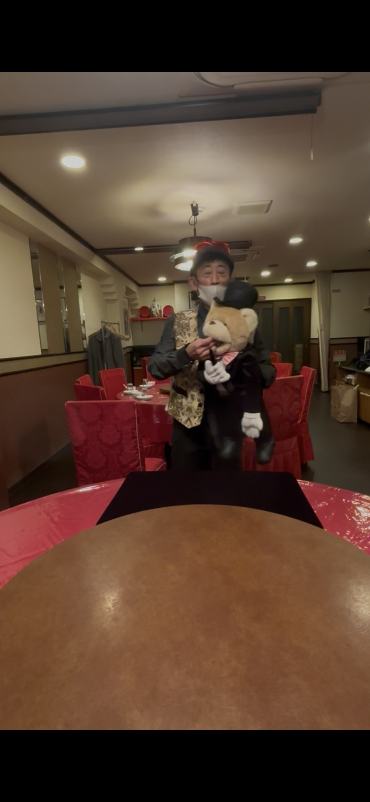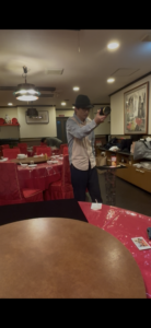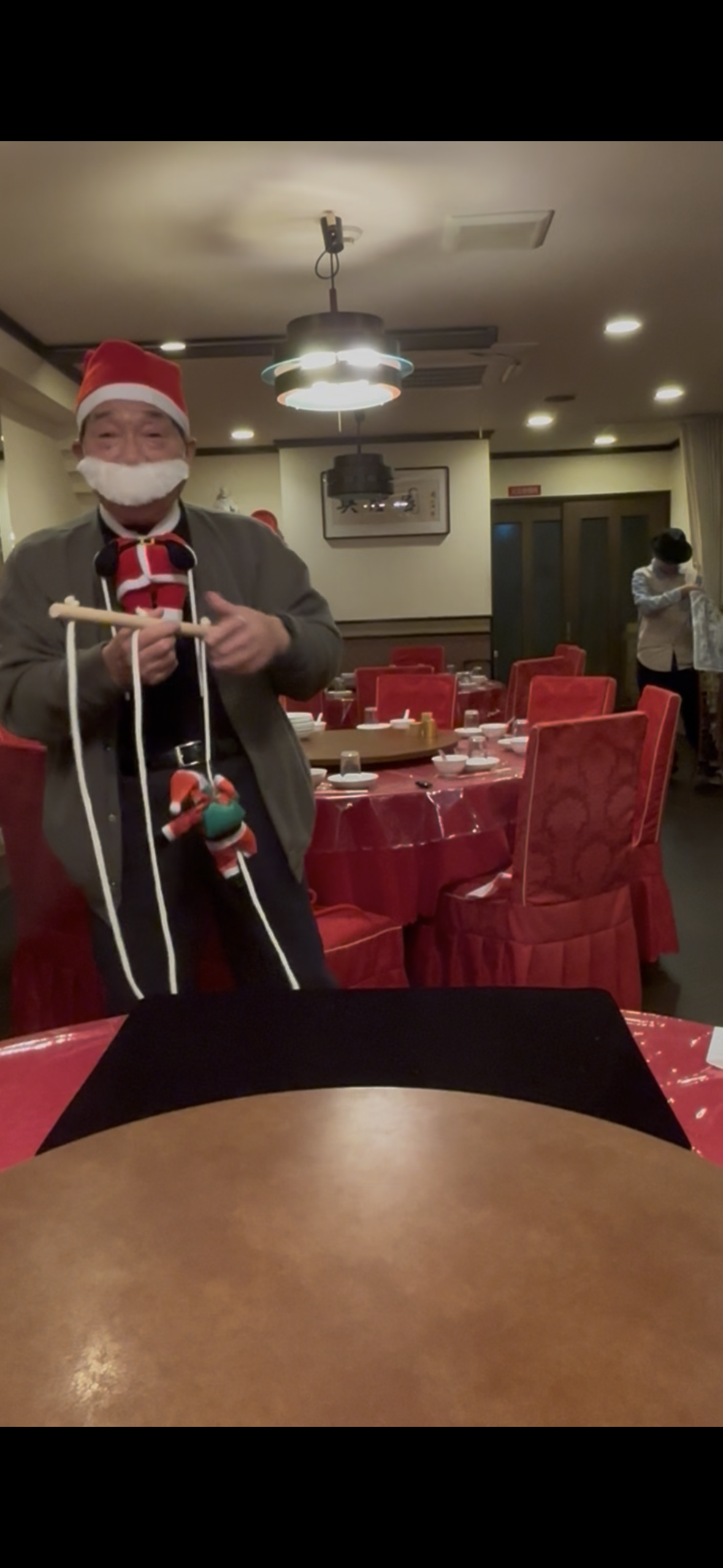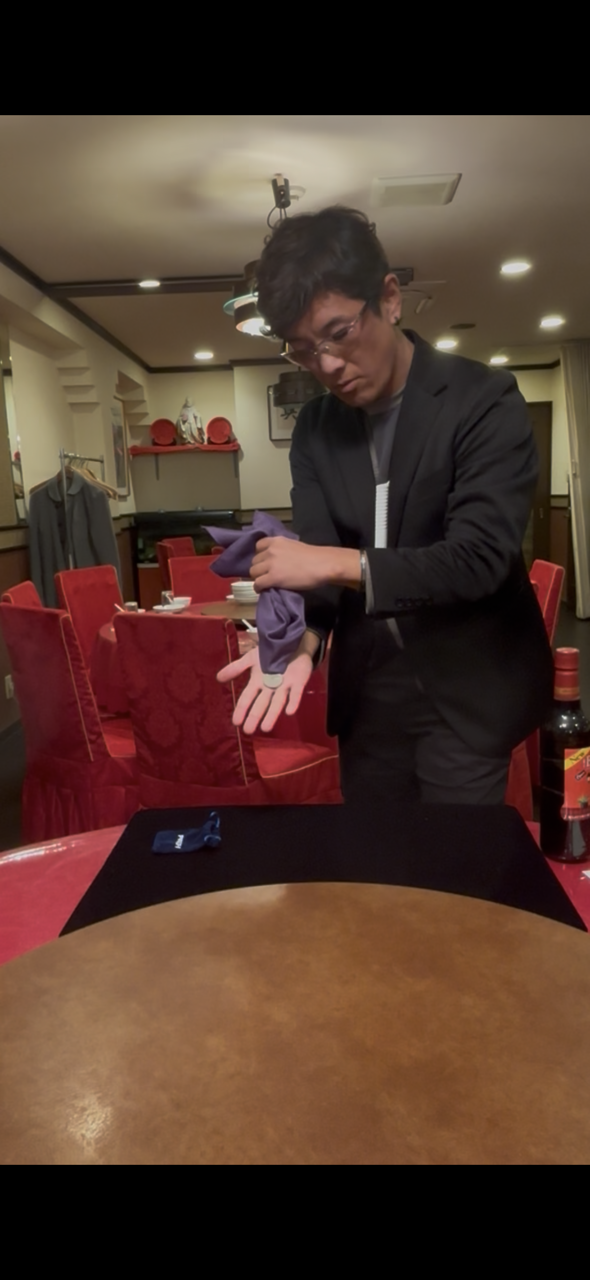 忘年会という事でいつもよりもお酒のペースも時間も少し長く、飲みながら手品をやっています!